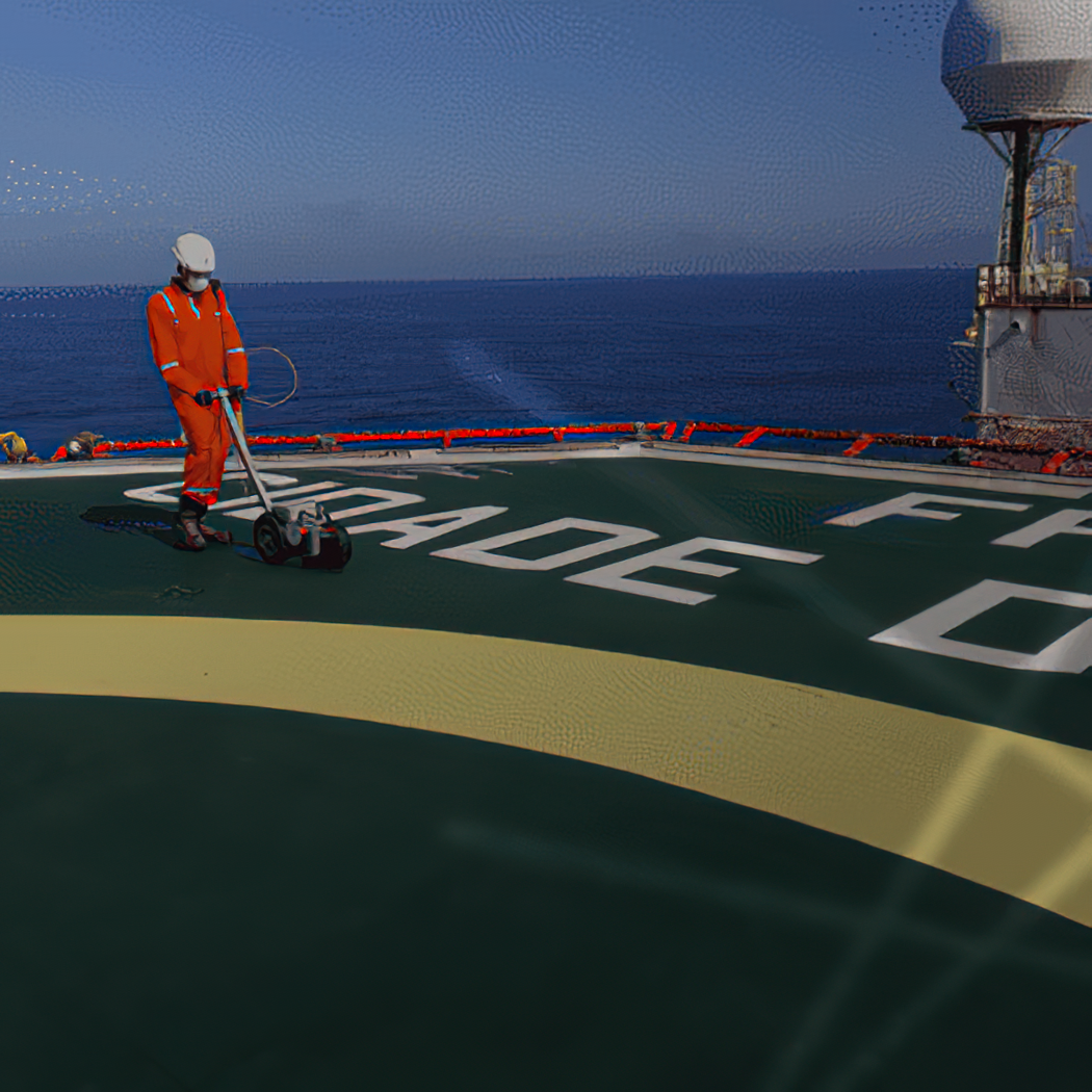 Realizamos serviços de aferição de coeficiente de atrito de piso helideck, em conformidade com a NORMAM-223/DPC ou CAP 437, utilizando a técnica de “Breaked Wheel” para a aferição do coeficiente de atrito, de forma a cobrir toda a superfície do helideck.